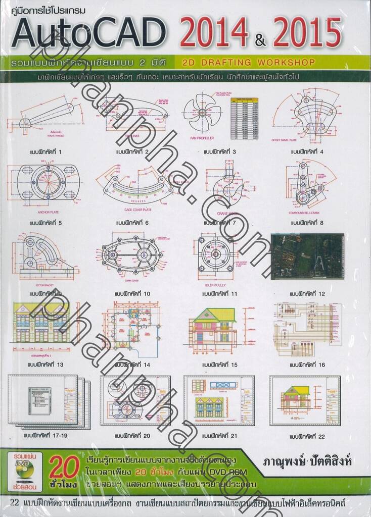 รวมแผ่น DVD ช่วยสอน 20 ชั่วโมง เรียนรู้การเขียนแบบจากงานจริงด้วยตนเอง ในเวลาเพียง 20 ชั่วโมง กับแผ่น DVD-ROM ช่วยสอนฯ แสดงภาพ และเสียงบรรยายประกอบ