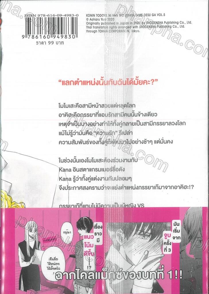 โมโมเสะคือสามีหน้าสวยแต่หลุดโลก ฮาคิอะคือภรรยาที่แอบรักสามีคนนั้นข้างเดียว เหตุจำเป็นบางอย่างทำให้ทั้งคู่กลายเป็นสามีภรรยาลวงโลก แม้ไม่รู้ว่ามันคือ "ความรัก" รึเปล่า แต่ความสัมพันธ์ของทั้งคู่ก็พัฒนาไปอย่างช้าๆ แต่มั่นคง ในช่วงนั้นเอง โมโมเสะต้องร่วมงานกับ Kana อินสตาแกรมเมอร์ชื่อดัง Kana รู้ว่าทั้งคู่แต่งงานกันปลอมๆ จึงประกาศสงครามว่าจะแย่งตำแหน่งภรรยาเก๊มาจากอาคิฮะ!? ภรรยาเก๊ที่แทบไม่มีความเป็นผู้หญิง vs สาวนักล่าเจ้าของชีวิตติดแกลม ศึกที่ห้ามแพ้เปิดฉากแล้ว...!! เกิดเหตุไม่คาดฝันสั่นคลอนชีวิตคู่ปลอมๆ ด้วย!? เลิฟคอเมดี้ชวนใจสั่นสุดดุเดือดเล่ม 5! ♡
